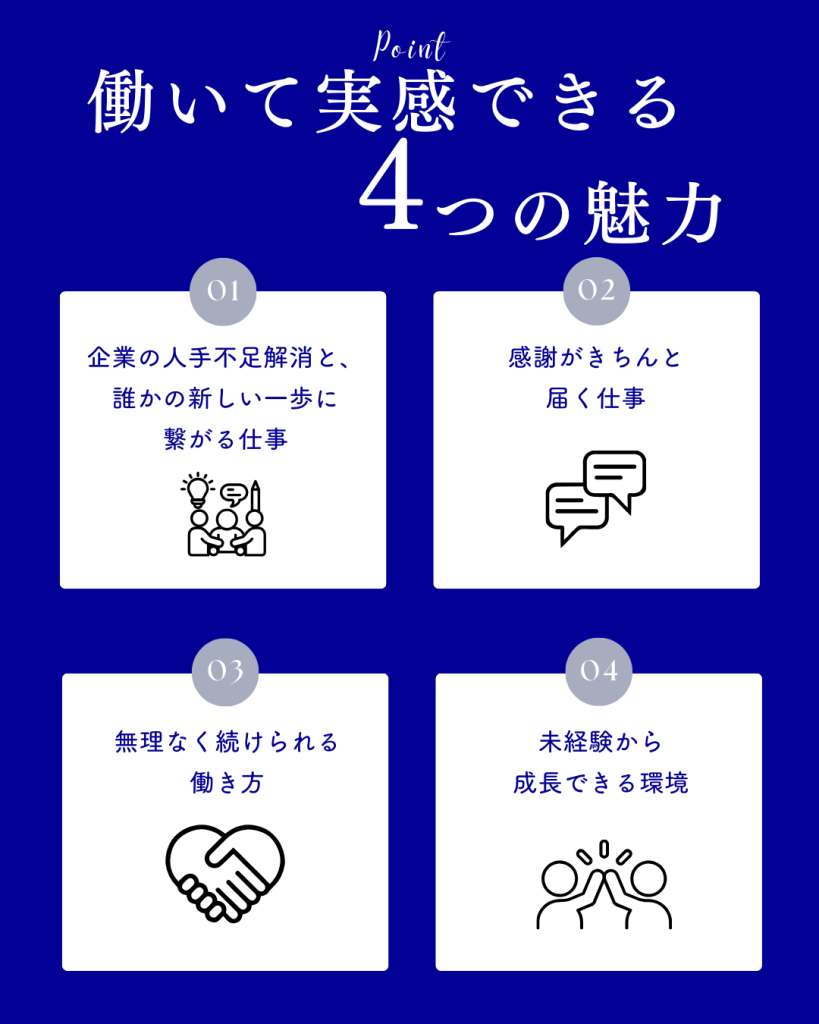 サポート体制は整っているので、複数業務も徐々に可能なので一緒に進めていきましょう!