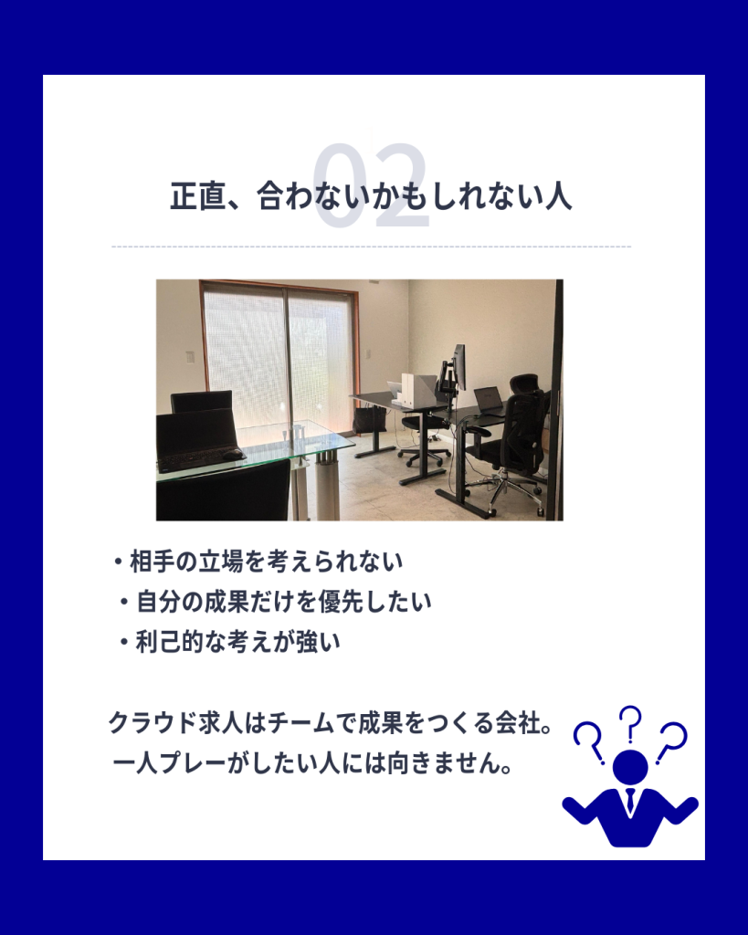 「判断・提案一人で任される仕事」よりチームで進める前提のポジションです。